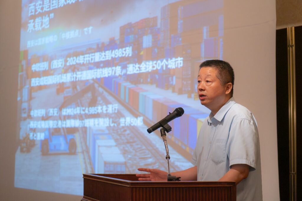西安市贸促会党组书记、会长冉红斌发表开幕致辞时,以“核心承载地”“创新策源地”“全球资源配置地”“服务示范地”“诗意栖息地”的“五维坐标地”概念向与会嘉宾介绍了今日西安的特点和各类优势,并表示欢迎更多日本企业关注西安、选择西安、赋能西安,到西安投资兴业,共谋发展。
