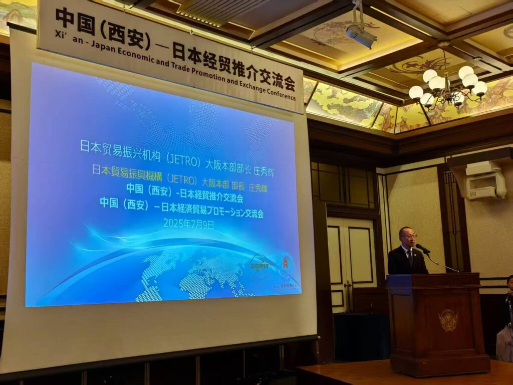 2025年7月9日上午,西安市贸促会以“携手世博 共创未来”为主题在日本大阪成功举办了中国(西安)-日本经贸推介交流会。本次会议由西安市投资合作局和西安市委外办支持,日本陕西总商会协办,共邀请了80余位中日嘉宾出席,日本企业代表多达34家。