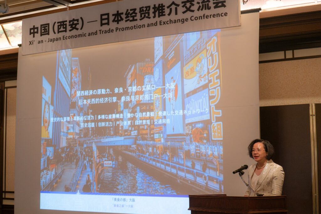 会上,中国驻大阪总领馆经济商务处主任、副司级参赞景春海、西安市贸促会党组书记、会长冉红斌、日本贸易振兴机构大阪本部部长庄秀辉等嘉宾出席会议并致辞。日本陕西总商会会长金小刚、日本关西中华总商会会长古川鹏程等嘉宾致欢迎辞并表达了热切希望与西安开展经贸合作的意愿。同时,西安市投资合作局副局长郑芝芳围绕产业发展、科技创新、对外开放、投资促进等方面推介了西安的投资环境,我市生物科技、商事法律、文创企业和日本的相关企业和商协会分别就企业产品和相关服务进行了推介。会议充分彰显了中日两地在经贸、投资合作方面积极交流与务实合作的良好势头。